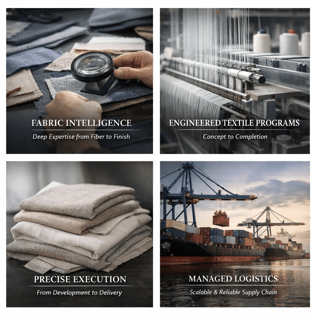Textile Ocean operates as an origin-side textile development and execution specialist, combining deep fabric intelligence with disciplined supply chain control. Our strength lies in translating concepts into fully engineered textile programs, managing every stage from fabric construction and product development to quality governance and shipment readiness.