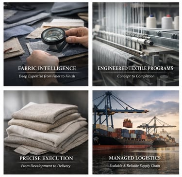 With on-ground presence and direct coordination with vetted production partners, we ensure precision, consistency, and scalable execution without unnecessary layers of cost or complexity. We are built to support importers, brands, and retail programs that demand reliability, compliance, and long-term performance, not transactional sourcing. At our core, we deliver controlled development, structured execution, and textile expertise that protects both margin and brand integrity.